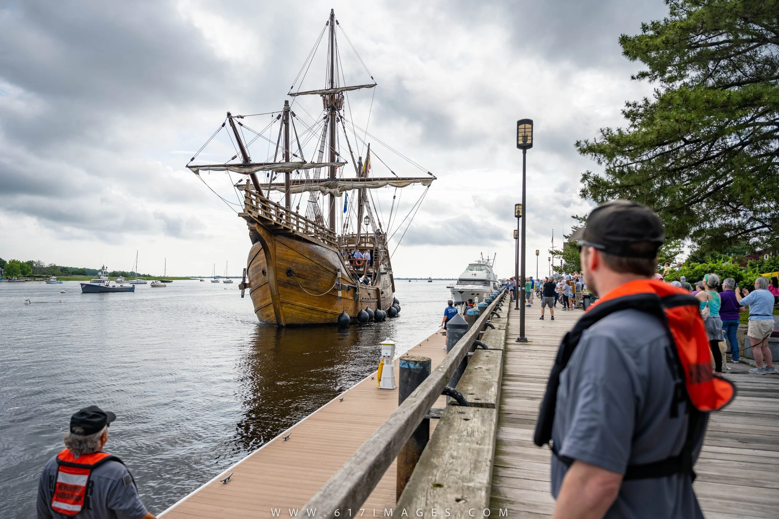 Newburyport, nestled on the picturesque shores of the Merrimack River, eagerly awaits the arrival of the Nao Trinidad. As the ship nears the harbor, locals gather along the waterfront, their anticipation palpable. Cameras click and murmurs of excitement fill the air as the vessel gracefully navigates the harbor’s gentle currents, guided by skilled mariners.